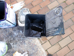 | きちんと最後まで使い切りました | 屋根の後は外壁・付帯部分へ。 養生をしっかりと! |